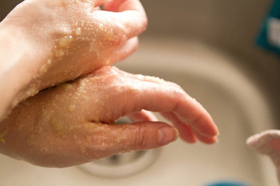 - Apply on hands and gently massage and rub to exfoliate